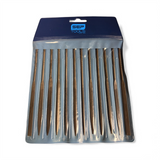 This 12-piece set of extra-fine needle files is designed for precision work in tight spaces. Each file measures 4" (100mm) in length with a cut 2 grade, making it the smallest and most refined set available—essential for detailed, high-accuracy tasks.
