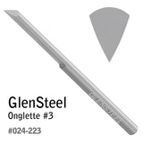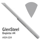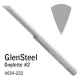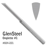 Preshaped with a tool point width, this GlenSteel Onglette can be used for cutting borders, inlay work, cutting lines with varying widths, line engraving, and stone setting techniques. Length: 2.3" (58.42 mm). Diameter: 0.125" (3.175 mm). This graver features two flat alignment areas on the shank for quick orientation in a QC Tool Holder. The set screws on GRS QC Tool Holders will contact the flat spots of the graver, ensuring that the graver is loaded accurately. Use with QC Tool Holder for 1/8" Round (#004-873).
