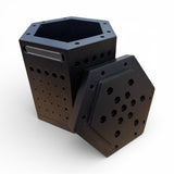 Compact hexagonal wooden storage solution featuring dual magnetic strips for secure organization of small tools and burs. The black finish provides a professional appearance while the strategically placed magnets keep metal implements readily accessible and properly arranged.