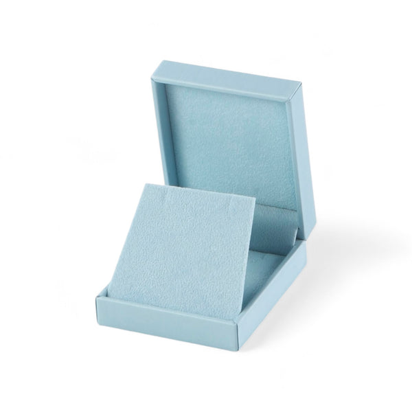 Description: Elegant Light Blue Leatherette Large Pendant Box with Light Blue Suede Interior. Matching light blue with a hint of shimmer two piece packer included