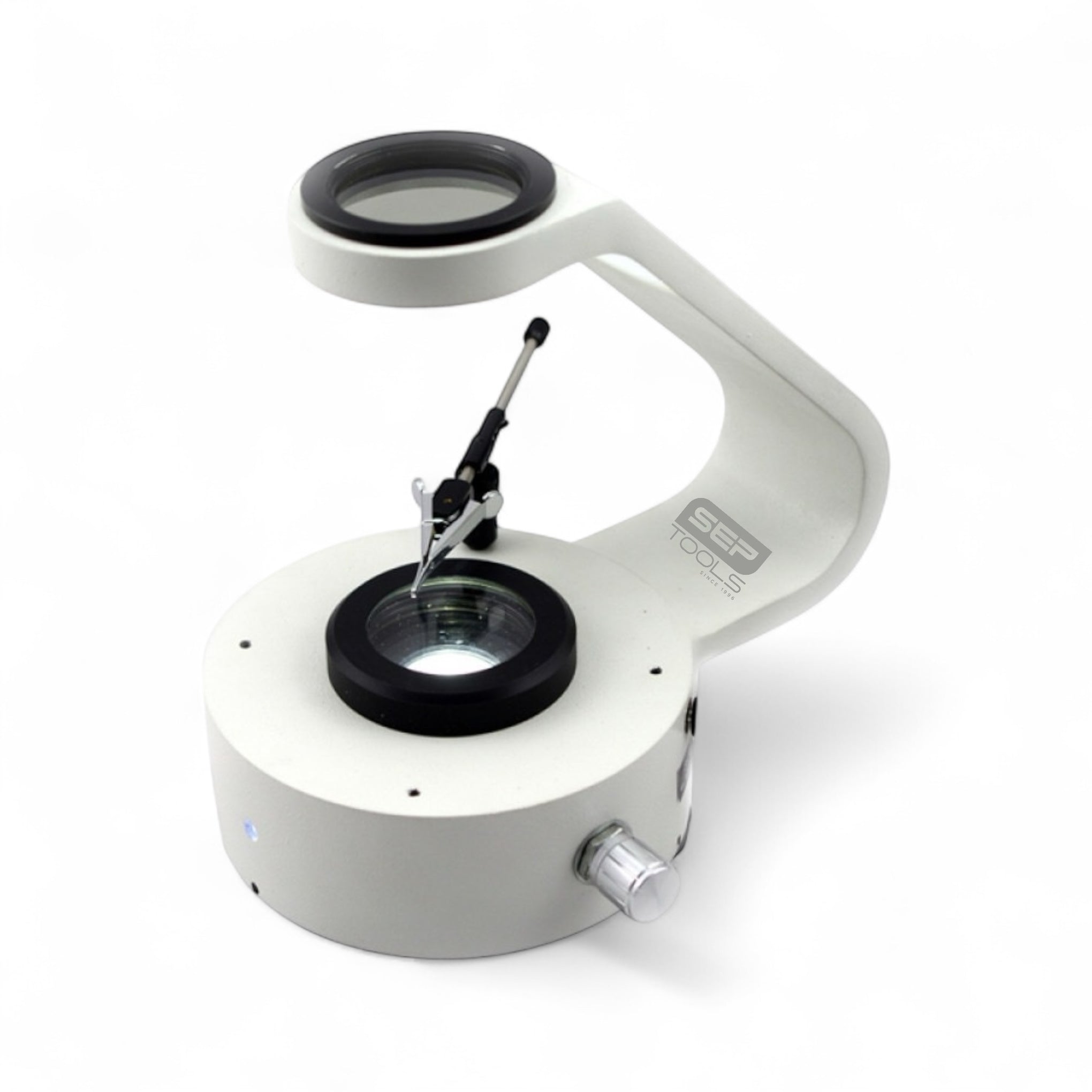 This newly designed polariscope offers advanced functionality for gemologists and jewelers, enabling precise inspection of gemstones for birefringence and internal strain. Equipped with LED illumination featuring adjustable brightness, and powered by a built-in Li-Ion rechargeable battery, it allows for fully cordless operation. The instrument is operated simply by rotating one of the two polarizing filters.